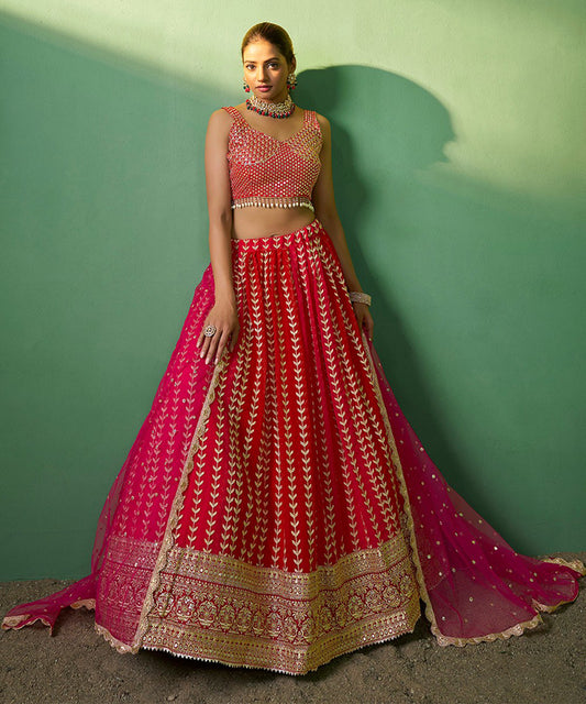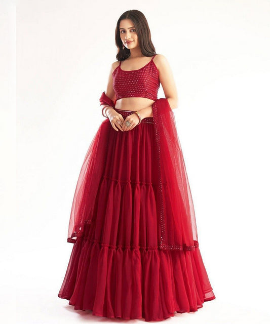 Lehenga Choli Red Thread Sequins Embroidered Georgette with Dupatta Unstitched