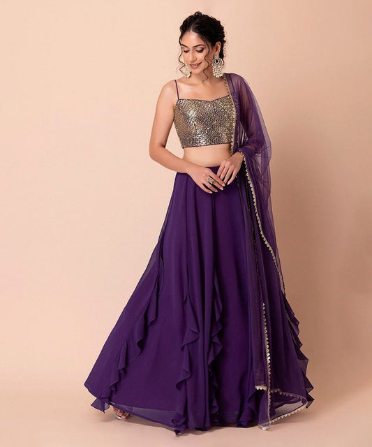 Lehenga Choli Purple Georgette Party Wear with Sequins Choli Unstitched