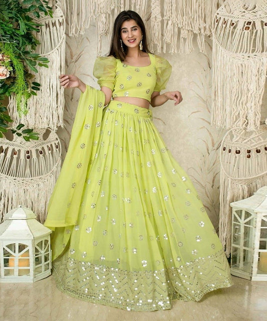Lehenga Choli Yellow Sequins Georgette Wedding Wear Unstitched