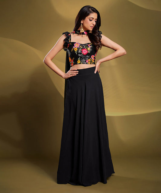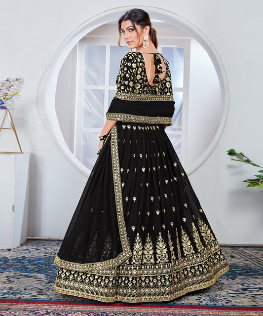 Lehenga Choli Black Thread Sequins Embroidered Georgette with Dupatta Unstitched