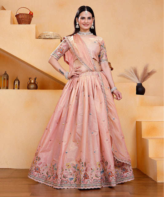Lehenga Choli Peach Art Silk with Exquisite Thread & Sequin Embroidery Dupatta Unstitched