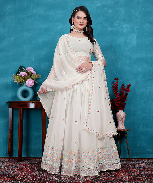 Lehenga Choli White Georgette Embroidered with Dupatta Unstitched