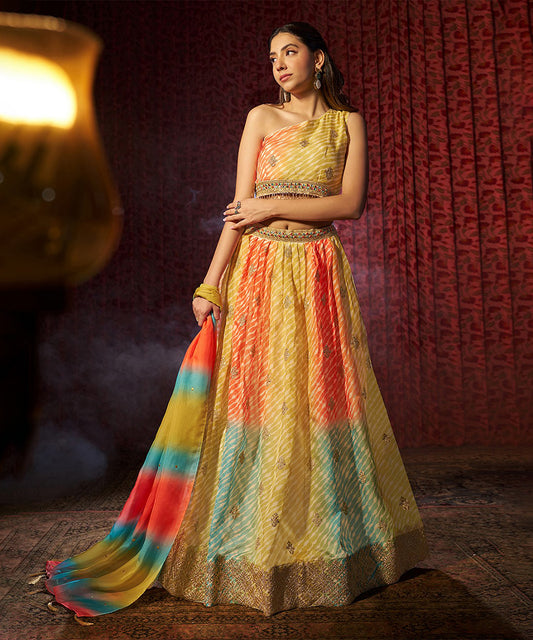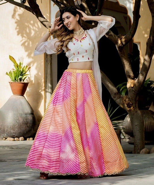 Lehenga Choli Multicolor Art Silk Digital Leheriya Printed Unstitched