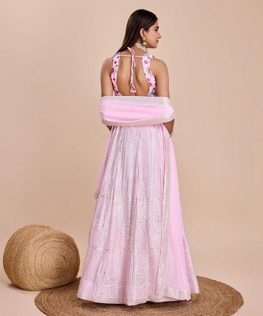 Lehenga Choli Pink Thread Sequins Embroidered Georgette with Dupatta Unstitched