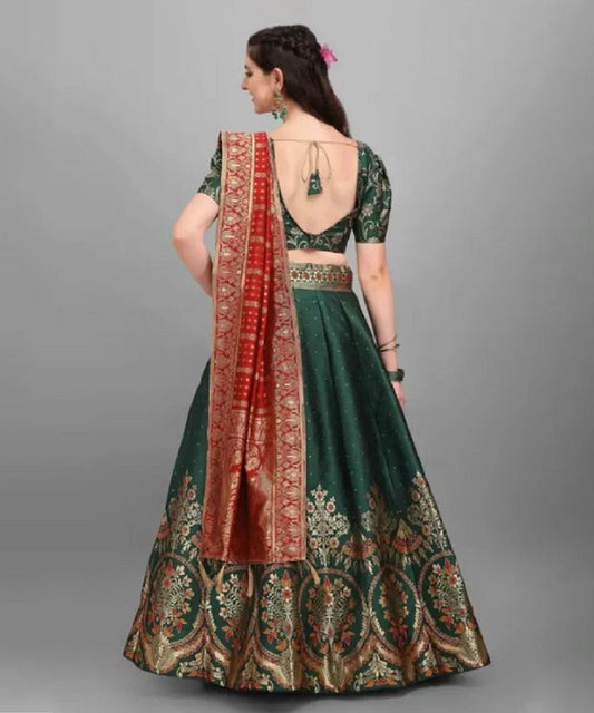 Lehenga Choli Green Art Silk Embroidered with Dupatta Unstitched