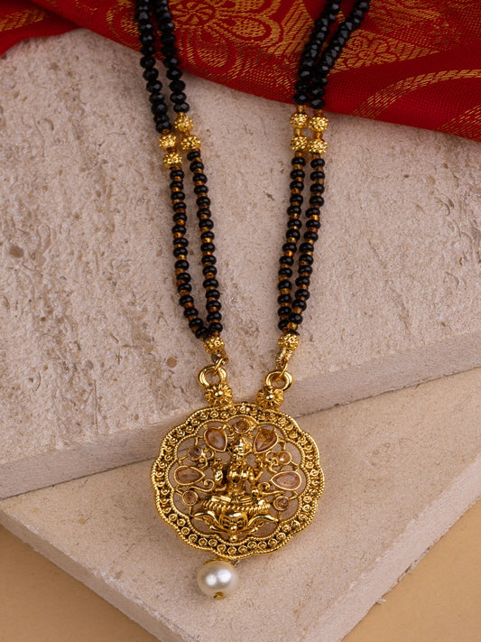 Ethnic Gold Tone Black Patterned Mangalsutra with Goddess Motif