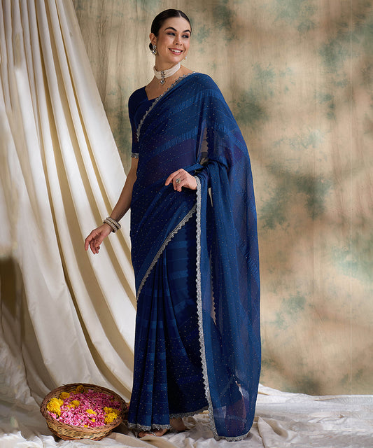 Navy Blue Glitter Georgette Saree with a Sparkling Finish
