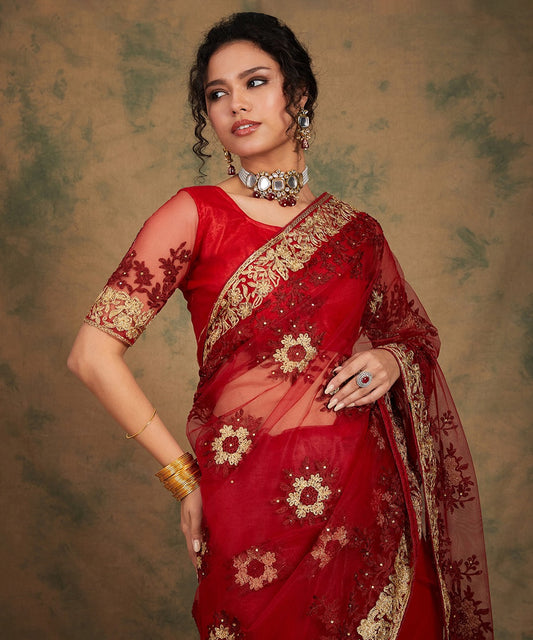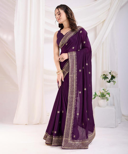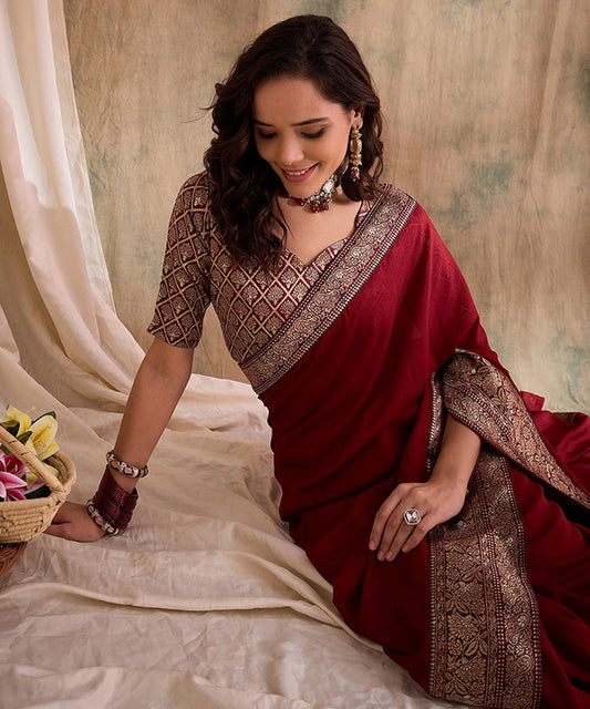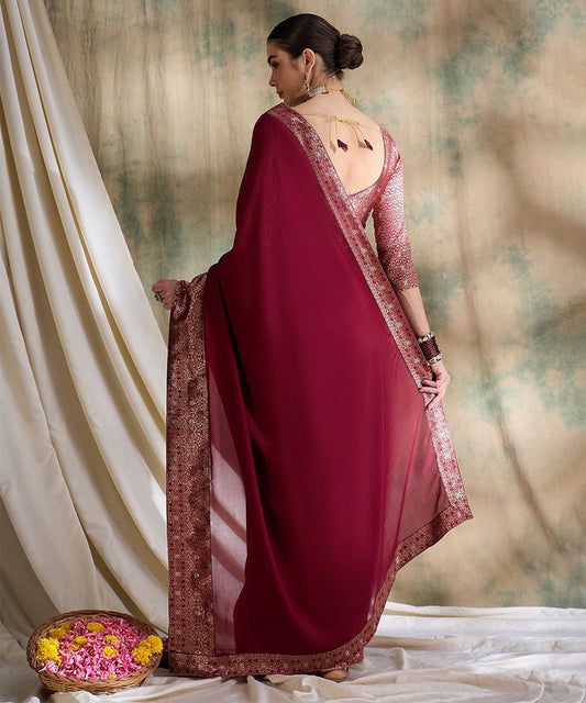 Maroon Heavy Embroidered Saree with a Classic Traditional Drape