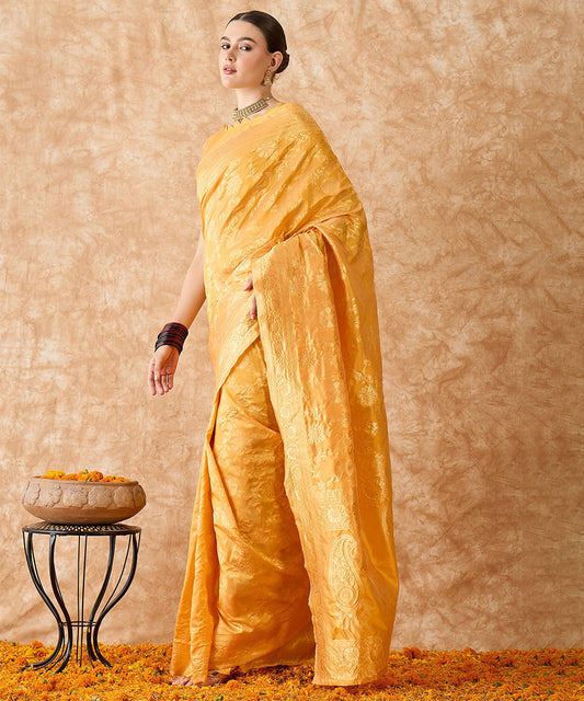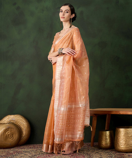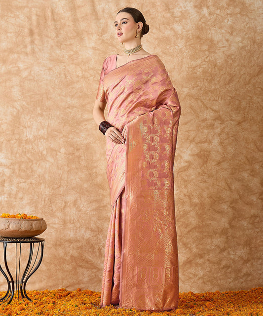 Peach Art Silk Saree with Gold Zari Motifs All Over