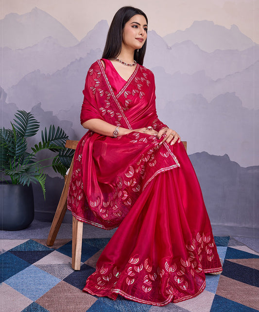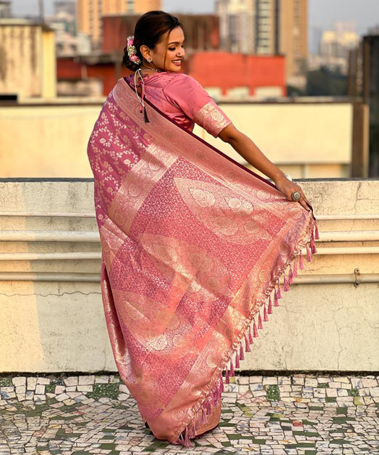 Pink Tissue Saree with Soft Embroidery and Elegant Blouse