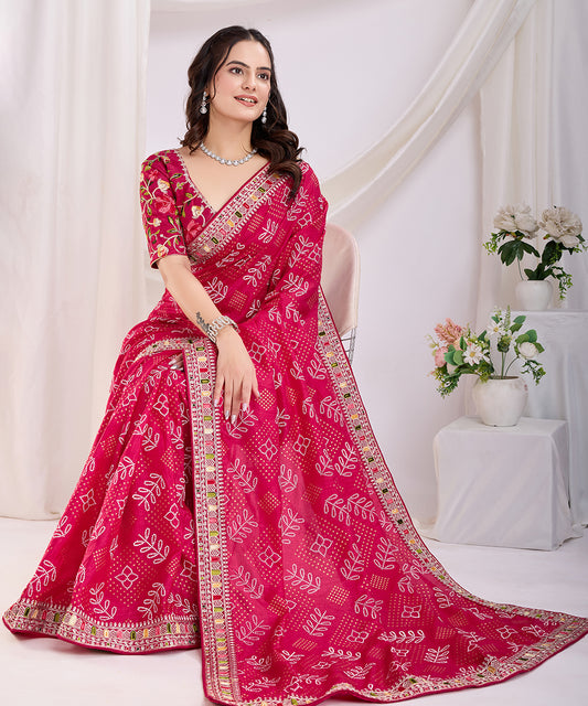 Pink Bandhani Print Saree with Embroidered Border Detailing