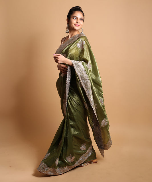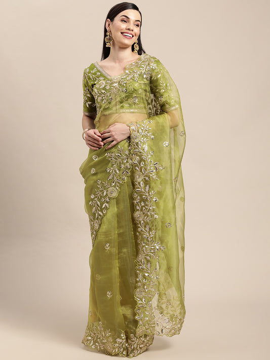 Mehendi Green Organza Embroidered Saree