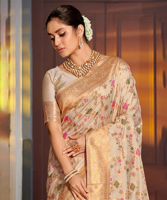 Saree Cream Banarasi Art Silk