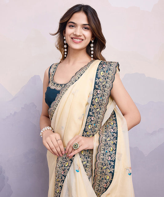 Cream Georgette Saree with Delicate Embroidery