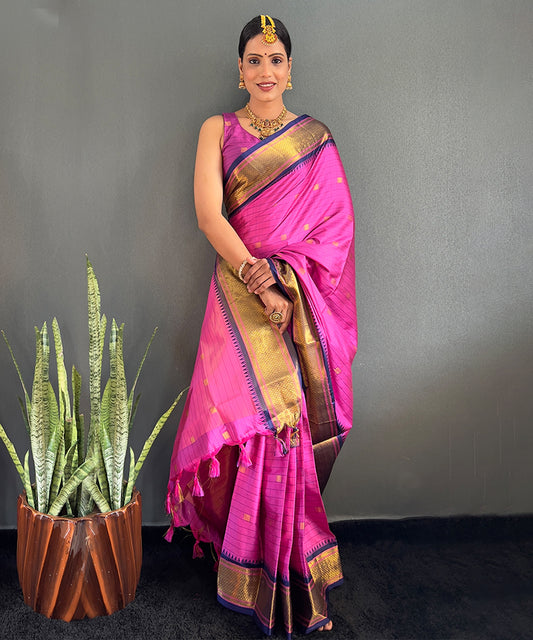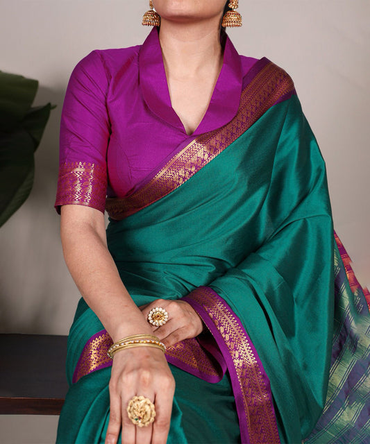 Magenta & Navy Blue Cotton Silk Saree