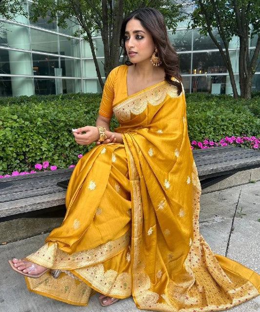 Saree Sunlit Yellow Cotton Silk