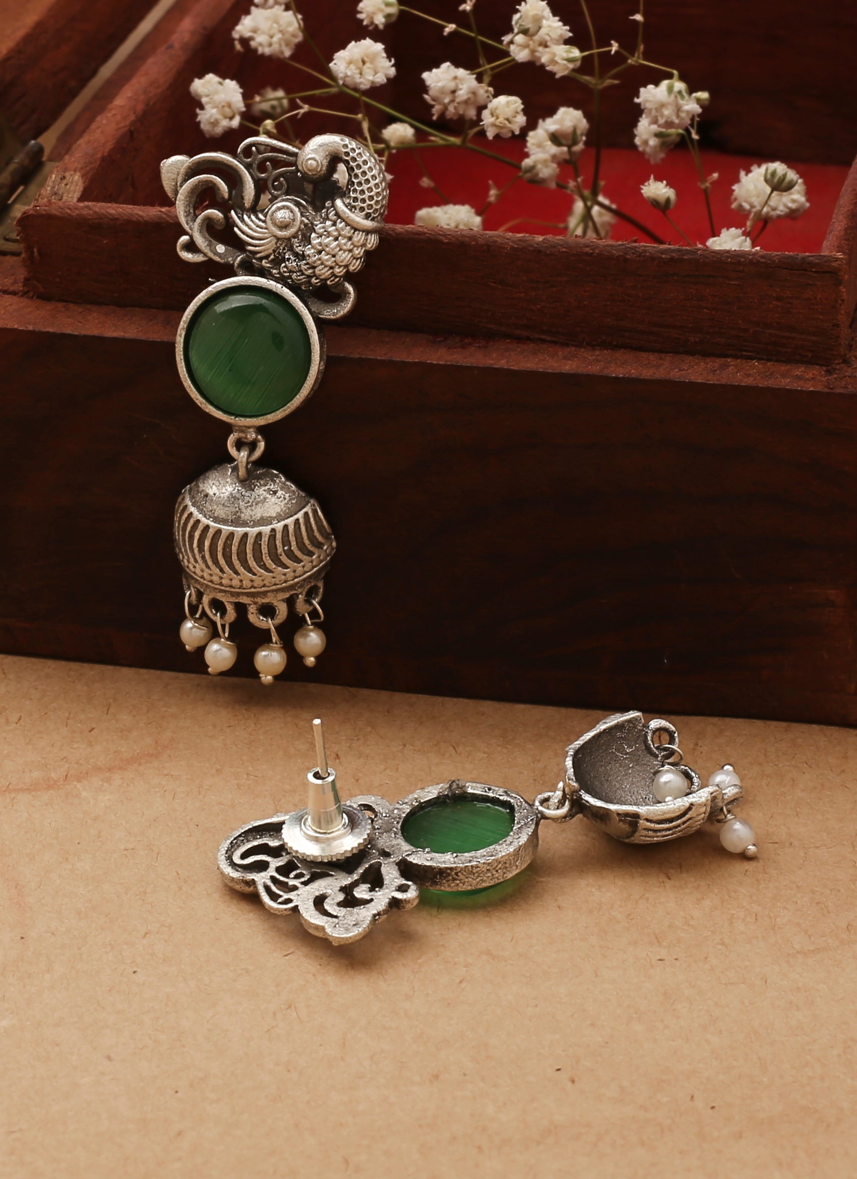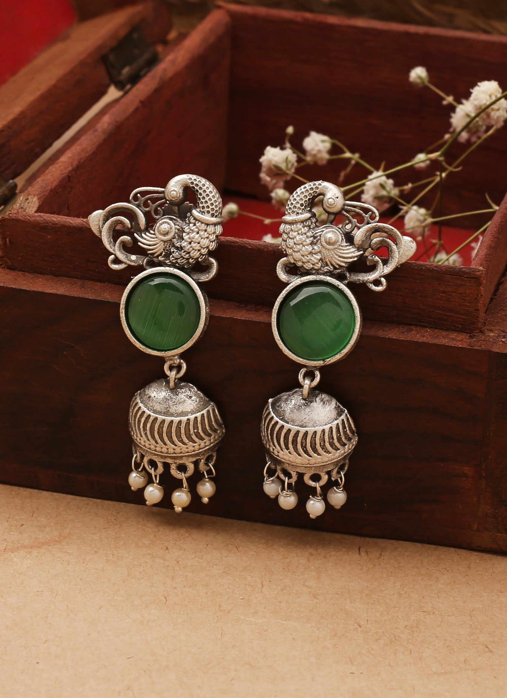 Graceful and unique, these silver earrings with swan motifs bring a touch of sophistication to any ethnic or festive outfit.
